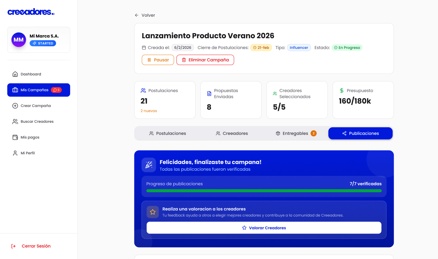 Gestioná todo el ciclo de colaboración con tus creadores desde la plataforma.